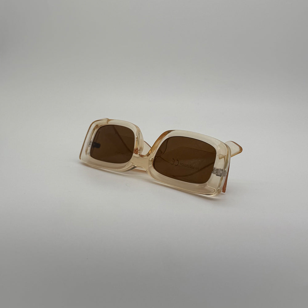 O Moccha é um modelo de óculos de sol unissex que captura a essência retrô-contemporânea dos finais dos anos 90 e início dos anos 2000, com uma estética minimalista e sofisticada que se destaca em qualquer look. A sua armação retangular estreita e slim, em acetato translúcido de tom bege pêssego com detalhes âmbar nas extremidades, combina robustez e delicadeza, oferecendo um contraste subtil que torna este modelo uma verdadeira statement piece.